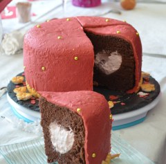 Pour ma môman, j’ai fait un gâteau type forêt noire, avec une mousse à la cerise à l’intérieur.
