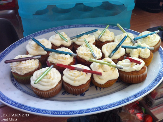On ne le voit peut-être pas sur les photos, mais l’hommage ultime sur les cupcake a été de les saupoudrer de petites étoiles, toujours comestibles bien sûr. Je proposerai ces recettes à la carte de la Cantina à l’occasion.