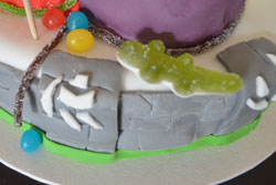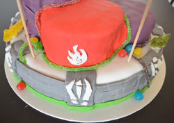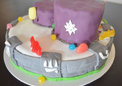 J’ai donc potassé (quoi, un portail ? Des classes de pouvoirs ?) pour confectionner ce gâteau pour un jeune homme de 10 ans. L’idée était de représenter ses trois personnages fétiches, le tout sur le fameux « portail » sur lequel les joueurs posent les figurines, pour les invoquer.