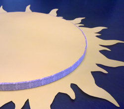 Et le clou du spectacle : j’ai customisé le socle en ajoutant du masking tape mauve (une sorte de scotch fin à motifs), et ai créé un soleil à partir d’une grande feuille épaisse jaune, et en formant moi-même les pointes pour créer un soleil.