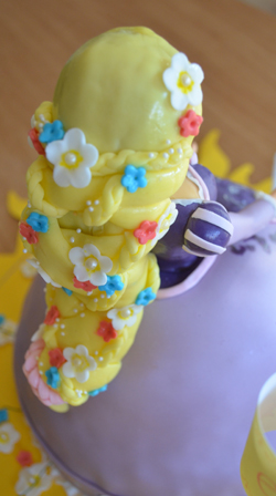 J’étais dans tous mes états lorsque j’ai su que j’allais faire un gâteau Raiponce. C’est l’un de mes personnages Disney préférés, aussi j’ai naturellement mis le paquet.