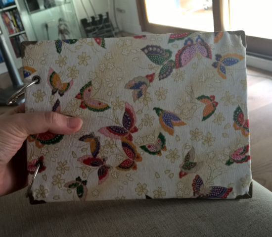 Première approche via une école renommée de Paris, j’ai déposé mon dossier de candidature en créant un portfolio de A à Z, en mode spirales avec la couverture en carton recouverte de tissu choisi pour l’occasion (les papillons me faisaient penser à de petites mignardises, quartiers de fruits ou encore des fleurs, parfaites décorations pour des gâteaux).