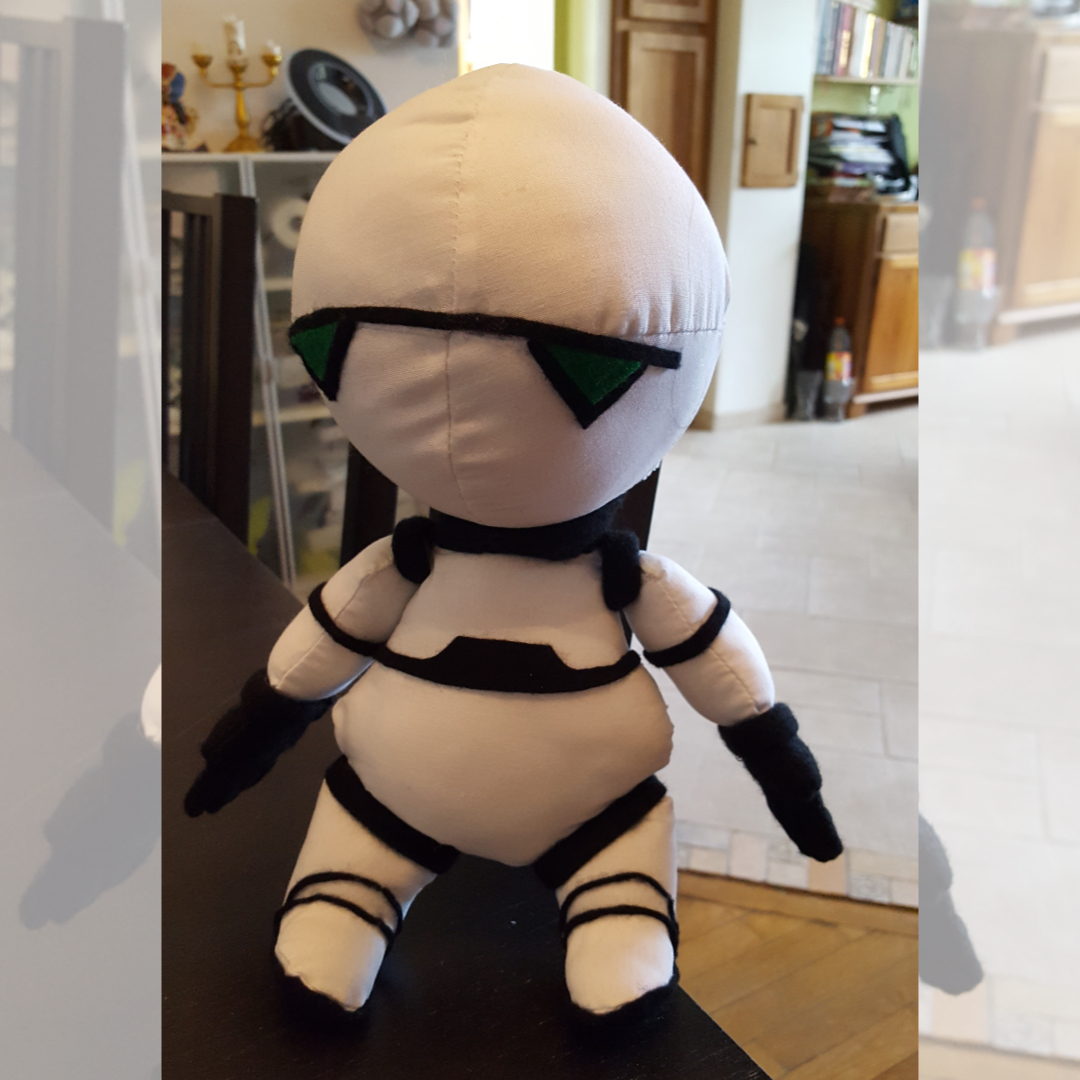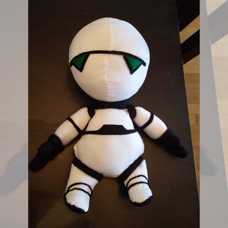 Le thĂšme Ă©tait donc H2G2 (Le Guide du voyageur galactique). J’ai cherchĂ© Ă ce titre une peluche de Marvin pendant un long moment mais sans succĂšs (et pourtant, j’ai un certain talent en la matiĂšre).