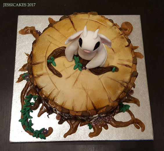 C’est une petite créature magique, qui est donc sur le gâteau, ça se passe…ouhhh spoiler, dans une forêt donc je l’ai naturellement posé sur une souche d’arbre.