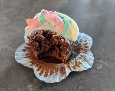 Nous avons marqué le coup sur place en achetant un gâteau arc-en-ciel à la vanille, décoré de cake toppers Gabby et la maison magique commandés et emportés spécialement pour l’occasion. De retour à la maison, une petite fête en famille a été organisée et nous avons réalisé des cupcakes avec tous les enfants présents. Au menu : la moitié de la préparation vanille teintée en rose et l’autre parfumée au chocolat. Le glaçage était du cream cheese maison, divisé en 3 pour obtenir les couleurs jaune, turquoise et rose, posés à la poche à douille. Le tout parsemé de sucres de déco, réalisé par les enfants. Enfin, les cupcakes ont été présentés sur un socle à 3 étages avec en son centre une licorne princesse. Sans oublier de jolies bougies colorées. Un festival chatoyant et joyeux et un régal qui n’a encore pas souffert de restes et a disparu bien trop vite 😆