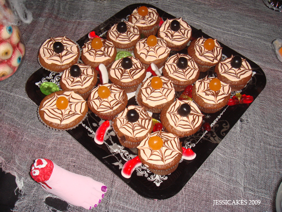 Mes premiers muffins au chocolat sans gluten à la crème au beurre et au stylo chocolat pour faire les toiles d’araignées.